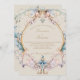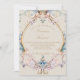 Um convite de casamento temático para uma república de vintage opulente. Apresentando criaturas elegantes em volta dos seus nomes. Creme macio com tons de roxo azul e pinks em uma matiz pastel refletindo o tempo de regência. Vintage e design de casamento elegante.