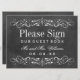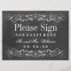 Envolventes decorativos e floresces enquadram esta elegante vintage inspirou o cartaz do livro de convidados de casamento com texto branco e monograma. O fundo tem uma aparência de quadro negro texturizado.