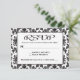 Torne fácil para os convidados responder ao seu casamento ou convite de festas com este charmoso cartão RSVP floral preto e branco. Esta charmosa placa RSVP apresenta um quadro preto e branco de damasco floral destacando suas informações de casamento/evento impressas em script e fontes pretas fáceis de ler destacadas contra um fundo branco nítido. A parte traseira da placa apresenta um plano de fundo damask preto-e-branco de coordenação. Você pode facilmente excluir a cor damasco e usar uma cor sólida em preto ou branco. Você pode personalizar facilmente este cartão de resposta para atender às suas necessidades alterando as cores e estilos da fonte. Você pode excluir a opção de menu e / ou adicionar vários convidados na linha de participação. Cartões RSVP de damascos pretos e brancos são perfeitos para... * Casamentos * Empresas * Cerimônias de Prêmios * jantas/eventos de caridade * Festas - feriados, aniversários, aniversários, aniversários Role para baixo para ver os produtos correspondentes de damascos pretos e brancos que você pode desfrutar. Convites, cartões de agradecimento, adesivos, etc.