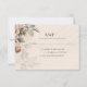 Este cartão de RSVP apresenta um design botânico vintage refinado com um fundo texturizado de falso pergaminho suave e flores delicadamente ilustradas em cascata no lado esquerdo. As flores, renderizadas em tons de terracota suave, sage e taupe quente, criam uma estética romântica e inspirada em relíquias, mantendo-se sutis e arejadas. A tipografia serifada elegante é centralizada no cartão, dando-lhe um sentimento atemporal e formal, enquanto o layout limpo fornece espaço para os nomes dos convidados e seleções de resposta. O estilo geral mistura sofisticação clássica com charme rústico suave, tornando-o maravilhosamente coeso com um conjunto de casamento inspirado em boho.