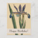 A vintagem botânica Iris Flowers está nos cartões postais de aniversário felizes.