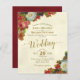 Estes belos convites para casamento são na moda e elegantes sem quebrar o banco. Eles apresentam um design elegante e rústico com flores vitorianas vintage em tons de burgundy, vermelho, rosa e branco, com caligrafia de ouro em fundo de creme de marfim marmoreado. Clássico, sofisticado e chique enquanto ainda é amigável e barato em orçamento.