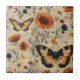 Elegant seamless pattern ceramic tile featuring delicate butterflies, golden orange wildflowers, and soft botanical details on a muted neutral background. Inspired by vintage nature illustrations, this dreamy design blends warm earthy tones with whimsical garden charm. Ideal for butterfly lovers, cottagecore fans, nature enthusiasts, and those who love soft floral aesthetics.