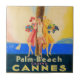 Anúncios especiais Vintage europeus de Viagem - Praia, aldeia, pessoas, palmeiras, mar azul e ilustração do céu