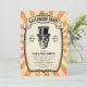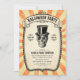 Vintage Halloween Party Invtions apresenta um crânio num chapéu de cima e um design de poster de carnaval antigo.
