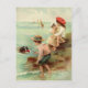 vintage crianças históricas em roupas de 1800' desaparecendo por dia na praia brincando com cartão postal de cachorro de estimação