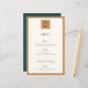 This vintage coastal wedding menu is designed for couples planning a beach or destination wedding with a modern vintage aesthetic. Featuring a refined art-deco influence and a balanced teal and warm orange color palette, it brings a polished yet relaxed feel to coastal wedding receptions. The subtle decorative detailing at the top adds a sense of structure and elegance, making the menu feel intentional and thoughtfully designed without overpowering the table setting.