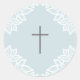 Um adesivo de batismo elegante com um canto branco suave em um fundo azul-céu. Excelente para fechos de envelopes ou favores.