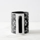 Uma caneca com um padrão elegante de margaridas e folhas de safra, de branco a preto.