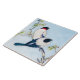 Azulejo em um desenho de tinta japonesa, com aprimoramento digital, de dois pontos azuis e brancos, com garras rubis em um galho