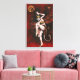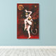 Esta canvas mostra uma dançarina vampira de vampiros, colocada antes de um fundo vermelho com uma lua de crânio gótico e estrelas.