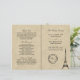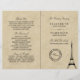 Estes cartões de modelo do programa são perfeitos para qualquer casal planejando uma celebração romântica de casamento vintage. O design apresenta um fundo de estilo antigo com uma torre Eiffel de tinta preta e um carimbo postal. O design simples pode ser personalizado para se adequar ao seu evento especial e será a ordem de serviço perfeita para qualquer festa tematizada, incluindo chás de panela, noivados, chás de casamento, festas de aniversário e muito mais.