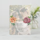 Elegante, moderno, romântico moderno, vintage emerald green gold e convite para casamento floral cor-de-rosa com coração de corda fotográfica, cor de pêssego rosa-rosa, flores de rosa-d'água e simples roteiro caligráfico.