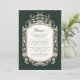 RICO EMERALD, VERDE FLORESTAL COM MENU DE JANTO FORMAL DOURADO PARA RECEPÇÃO DE CASAMENTO OU CHÁ DE PANELA. Clássico e fabulosamente ornamentado, aspecto dimensional do ouro, quadro rococó barroco vitoriano sobre uma elegante cor damasco de tom em tom vintage em verde-caçador escuro que foi desenhado graficamente pela artista internacionalmente licenciada Audrey Jeanne Roberts ©