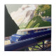Anúncios de Viagem na Europa retrógrados - Tons de cor amarela, Primavera verde, Viagem ferroviário - Trem, Ponte de Pedra e Ilustração Histórica da Vila