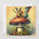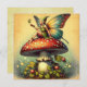 Uma fada vintage sentada num cartão de vazio de cogumelos retrô com um tema de conto de fadas doce.