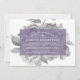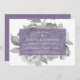 Rico e elegante em tons de cinza com um pop de ameixa de lavanda escura, nosso convite de festas Floral Vintage é uma bela escolha para o batizado, batismo ou dedicação de sua menina. Design apresenta um fundo de flores de coloração branca e preta com uma cobertura violeta pura roxa que contém os detalhes do evento em letras brancas modernas, acentuadas com uma pequena cruz branca.