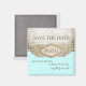 Estes são imã salve o dia são um alternativo inteligente para o convite em papel. Este imã garante que os seus convidados não se esquecerão da data do seu casamento, pois eles provavelmente vão ver o seu lembrete inteligente toda vez que abrirem a geladeira! Trabalho de arte por Tina Melendy.