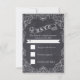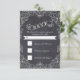 Quadro de folha de rolagem Vintage e cartão de resposta/resposta RSVP de casamento de quadro de quadro de quadro de quadro com uma imagem branca das folhas de rolagem em um quadro de cinza de carvão ou fundo de quadro negro e seu texto em uma faixa de rolagem. Uma abordagem moderna e contemporânea a um tema antigo. Este modelo é parte de um casamento, é totalmente personalizável e pode ser personalizado.