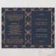 Estes programas dobrados são perfeitos para qualquer casal planejando uma celebração romântica de casamento vintage. O design apresenta um fundo design geométrico na moda em marinho e ouro com um quadro decorativo de borda e é finalizado com uma redação elegante e editável. O design simples pode ser personalizado para se adequar ao seu evento especial e será a ordem de serviço perfeita para qualquer festa tematizada, incluindo chás de panela, noivados, chás de casamento, festas de aniversário e muito mais.