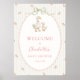 This baby shower welcome poster design features a cute goose and her mama, and a whimsical vintage frame design with stripes and garden flowers. Perfect for the trendy goose/duck theme, or backyard garden baby showers.