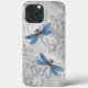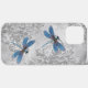 A vintage collage design featuring an elegant grunge damask pattern with a pair of blue dragonflies.