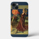 Ilustração Vintage design de feriado de Halloween com uma bruxa bonito e feliz dançando. A dançarina de bruxa está com uma vassoura com uma cabeça de abóbora sorridente. É uma festa de dança!