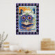 Vintage Hippy Flower Cat Impressão Poster