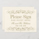 As espirais decorativas e o florescimento enrolaram este elegante vintage inspirou o símbolo do livro de convidados do casamento com monograma. Design de marfim e ouro antigo.