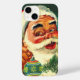 Estilo Vintage Papai Noel segurando um Enfeites de natal com um brilho nos olhos. Diversão da design de Natal tradicional para as férias!