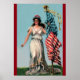 Esta é uma trabalho de arte de colheita que representa uma mulher segurando uma bandeira.