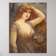 Uma adorável Poster da Vintage com uma adorável dama de cabelo ruivo e olhos cheios de sabores vestidos de terno, vestido ou vestido de renda.