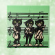 Esta é uma imagem antiga de 3 jazz tocando músicos a preto com olhos verdes tocando seus instrumentos musicais, nos anos 30. São notas de música fazer com saxofone, violino e guitarra. Veja minha loja para outros produtos com este design.