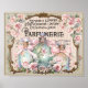 Garrafas de Perfume Vintage Rosas Poster de Script Francês em um fundo listrado rosa e branco! Horizontal 10" x 8"
