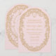 Este convite para o casamento Vintage Pink Paris Glam apresenta um quadro de folha oval de arte antiga em um fundo cor-de-rosa. Você pode adicionar seu monograma ao topo da imagem na frente e atrás. Um design elegante que qualquer noiva sofisticada amará.