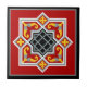 Ofereça ao seu amigo este azulejo cerâmico com um design tradicional de azulejo de Barcelona. O fundo é vermelho profundo. Azulejo de Barcelona, Espanha. Um padrão tradicional do final do século XIX e início do século XX. Muito colorida, octogonal e geométrica, ideal para mercadoria. Sonho com a região da Catalunha e um pouco com o Mediterrâneo. Barcelona é uma cidade espanhola e, entre muitas coisas, conheceu pelos seus coloridos azulejos de cimento. Estes azulejos formam padrões, às vezes geométricos, em pisos e paredes. Os azulejos são populares porque dão um olhar tão mediterrânico e sentem-se na vossa casa. Como se estivesse na Espanha. Os azulejos de cimento não são cozidos num forno, mas são uma versão do cimento Portland. A primeira camada aplicada é o padrão de cor e a segunda, mais espessa, é a camada de cimento da cinza. Então eles são pressionados juntos. A camada superior de padrão é fundida com a camada inferior de cimento. Este tipo de azulejo é muito durável.