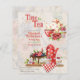 Linda safra retrorou convites temáticos de polkadot vermelho e branco. Editar para qualquer evento, incluindo aniversário, bebê ou chá de panela, aposentadoria, Dia de as mães ou mais.