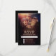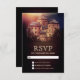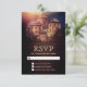 Cartão RSVP Elegante com um belo castelo contra um fundo de madeira de celeiro rústico.
