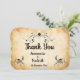 Negras decorativas e floresces enquadram este elegante design de cartões de agradecimentos de casamento da tipografia rustica de vintagem. O fundo de marfim rústico é impresso com uma aparência texturizada de papel pergaminho envelhecido. Personalize seu texto no cobrir frontal e no dentro de texto com uma mensagem personalizada.