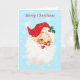 Fofo Vintage Papai Noel no cartão azul claro. O texto interno pode ser personalizado.