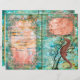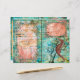 Folhas lindas com lados duplos. Lado 1 é cavalo marinho com belos quadros de turquesa com centros cor-de-rosa laranja. Lado 2: Lagosta com folhas de vintagem rasgadas com linhas fáceis de escrevendo. O fundo é bolhas oceânicas e madeira velha com algas.