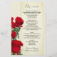 modelo do menu Rosa vermelha na cor sépia vintage. Use para uma recepção de casamento, um almoço de chá de panela ou outro evento grande. Flores rosa realistas e botões decorando a borda, com um pouco de verde. O reverso é sólido. Texto "Menu" na parte superior com nomes e data na parte inferior. As seleções de menus são adicionadas em um parágrafo usando espaços, conforme necessário.
