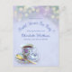 Cartão-postal azul de Chá de panela do Partido do Tea Vintage, romântico, macio e feminino Apresentando uma xícara de chá vintage decorada com violetas doces e luzes de jardim com foco suave no fundo. * Nota especial - Envie cada cartão separadamente e adicione-o ao carrinho, um de cada vez, para que os nomes e endereços dos convidados possam ser impressos nos cartões. Se preferir escrever os nomes e endereços manualmente, basta apagar essa seção.