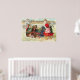 Imagem de Ação de Graças Vintage com duas crianças usando dois perus para puxar o carrinho em direção ao Torneio de Ação de Graças.