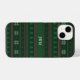 Um padrão de suéter de abeto e natal vintage acima de seu texto personalizado em uma capas de iphone de feriado personalizada. Personalize seu presente festivo com suas saudações pessoais no celular verde e vermelho do Natal.