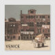 Praça de Veneza. Carrinho com caixas no meio da antiga praça italiana com edifícios coloridos em Veneza, Itália. Correio, serviço de entrega em Itália. Caixas soltas