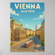 Experience the elegance of the Austrian capital with this stunning vintage-style Vienna travel poster. This illustration showcases the majestic Vienna State Opera (Wiener Staatsoper) and a charming traditional red tram gliding down the ring road. Bathed in soft sunlight with a clear blue sky, this artwork captures the historic beauty and cultural richness of Vienna. A perfect addition for lovers of opera, classical music, and European architecture. This retro art print brings a touch of old-world class to any home or office gallery.