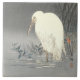 Vintage White Heron Japonês Na Borda Das Águas