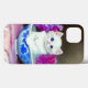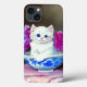 capas de iphone com um gatinho branco doce! Este gato fofo se posou em uma tigela azul decorada com flores cor-de-rosa. Um presente maravilhoso para amantes de gatos e entusiastas de arte vitorianos!