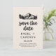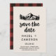 Esta xadrez de natureza selvagem vintage, para salvar o cartão de data é perfeita para um casamento na montanha. As montanhas rochosas inspiraram design a apresentar uma montanha desenhada pela mão, lago e cena florestal com uma xadrez de búfalos, apoiando uma confortável sensação de cabana.
